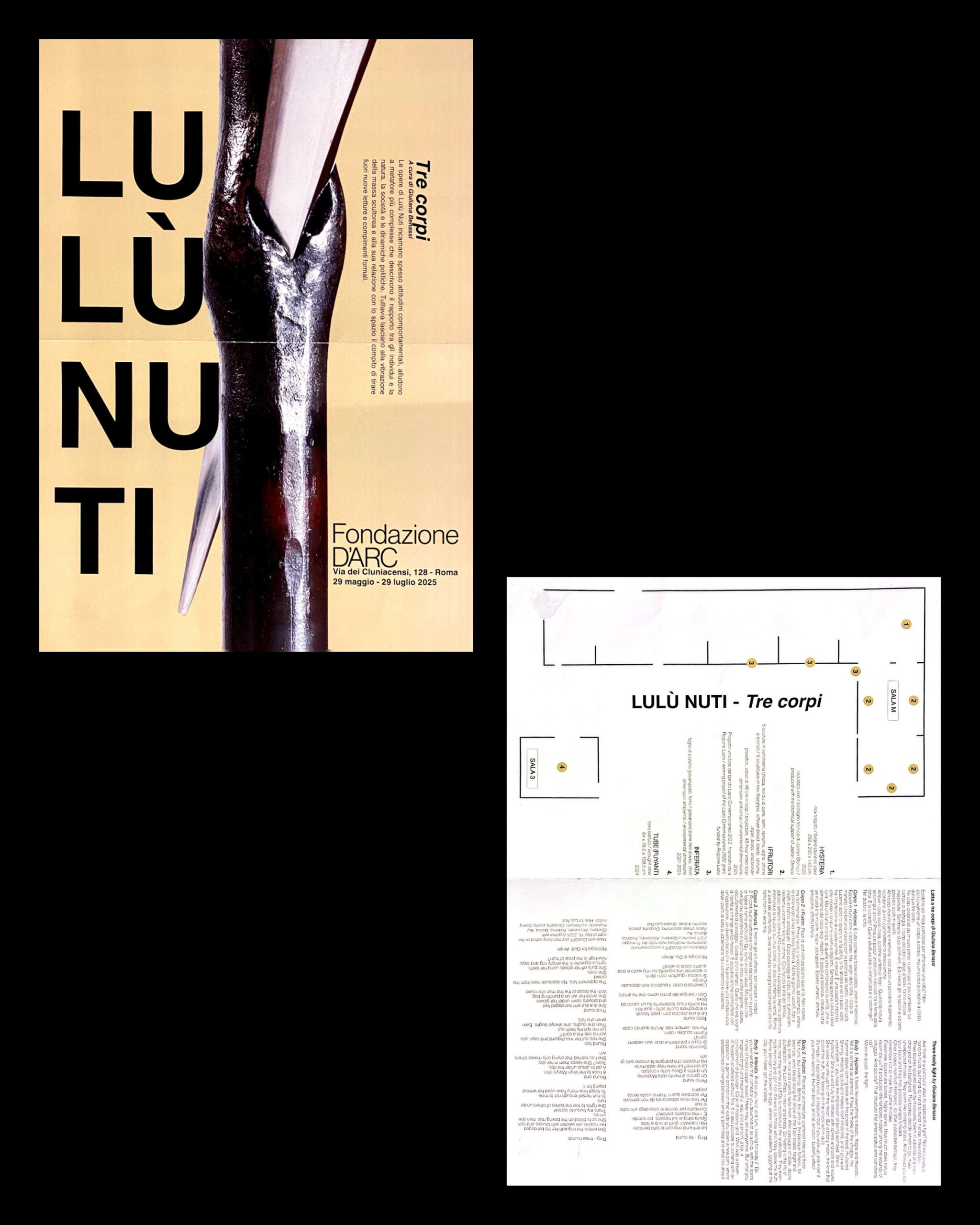 Il progetto grafico realizzato per la mostra di Lulù Nuti nasce da una riflessione sul concetto di frammento: non l’opera nella sua totalità, ma un dettaglio, un punto di tensione, un ingrandimento che rivela ciò che a scala reale rimane nascosto.