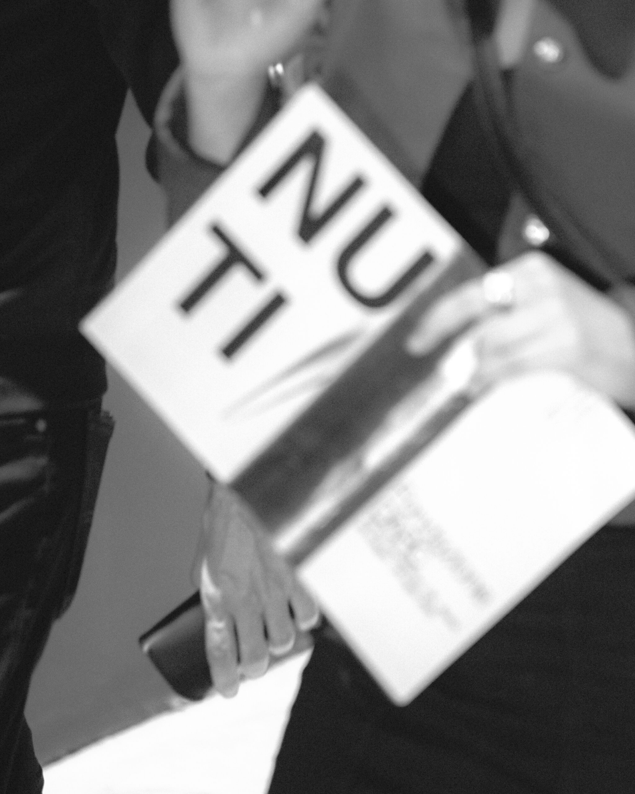 Il rivetto metallico che tiene insieme i diversi strati funziona come elemento strutturale e simbolico. Il suo carattere industriale richiama le spille da balia e gli aghi utilizzati dall’artista. L’oggetto editoriale diventa così frammento portatile dell’esposizione.